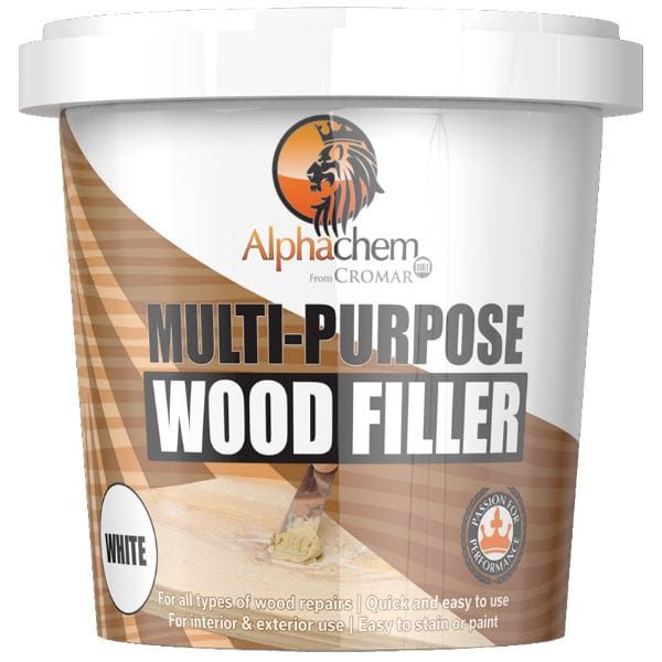 Cromar AlphaChem Multi-Purpose Wood Filler is specially designed for a wide range of wood repairs, including window frames, doors, and skirting boards. It provides strong adhesion and remains flexible once set, making it suitable for durable, long-lasting results. The filler can be finished to match surrounding surfaces, as it can be stained, varnished, or painted as needed, and it is available in both white and brown to suit different applications.