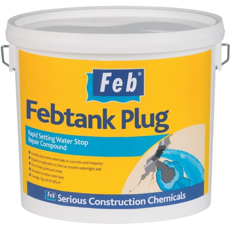 Feb Febtank Plug is a fast-acting waterproof repair compound designed to instantly stop active water leaks in concrete and masonry. Ideal for emergency repairs, it sets rapidly even in the presence of running water, forming a strong, durable seal that resists wash-out.