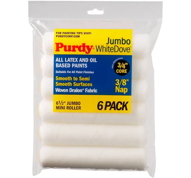 The Purdy White Dove Jumbo Sleeve 6.5″ x 3/8″ 6 Pack is a professional-grade jumbo mini paint roller sleeve.