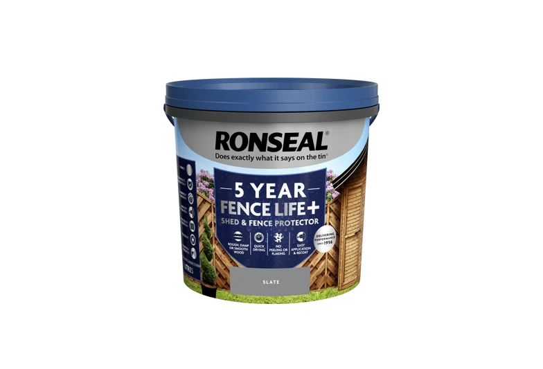 Ronseal Fence Life Plus is a tough and versatile treatment designed to protect fences and sheds from all types of weather, including rain, frost, snow, and UV damage. Suitable for both rough sawn and smooth planed wood, it provides long-lasting colour that resists greying in the sun for up to five years. Easy to apply by brush or sprayer, it can even be used on damp wood, making it ideal for unpredictable weather conditions, and becomes showerproof in just one hour.